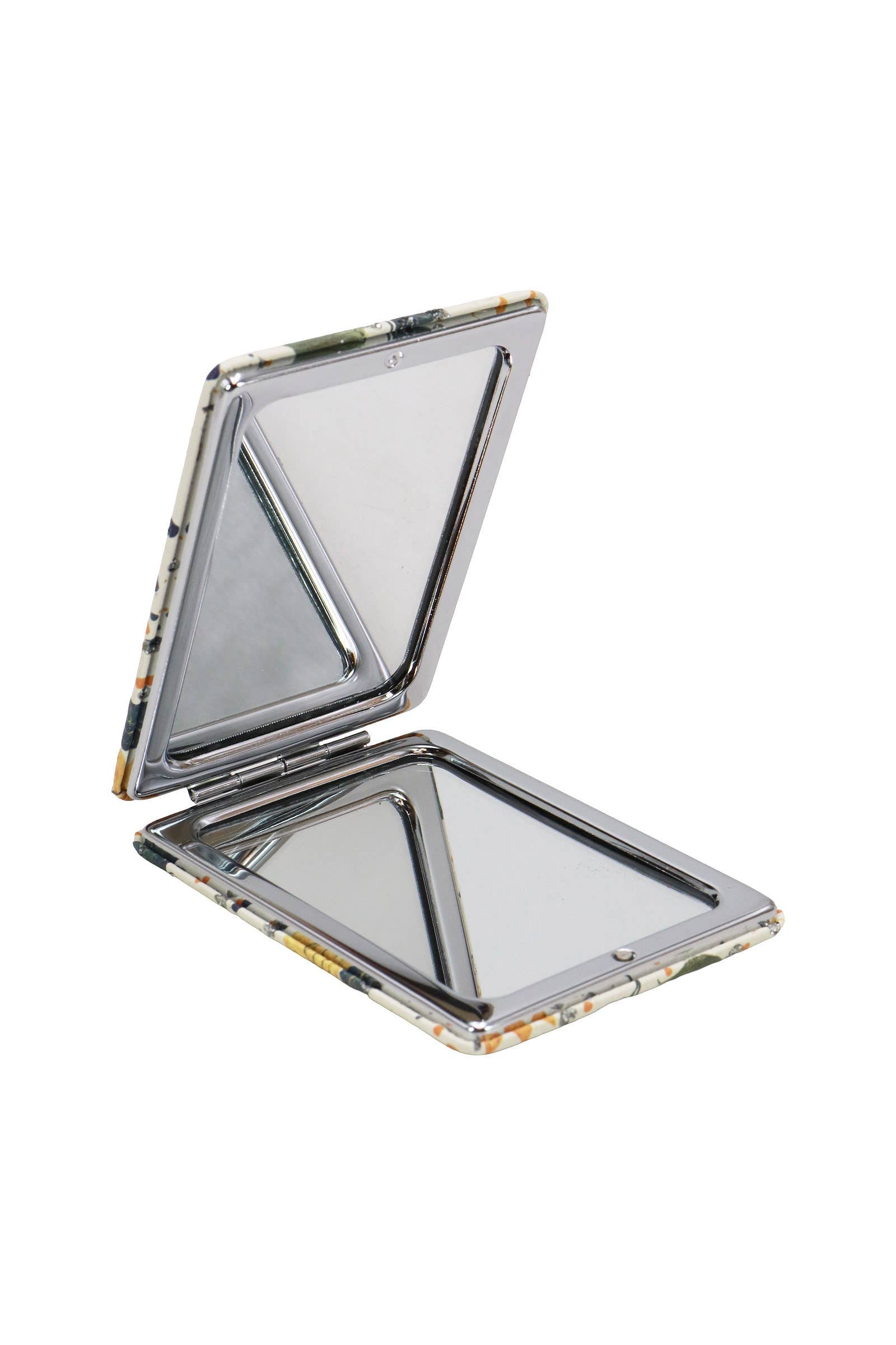 Yellow Sunflower Floral Glitter Print Compact Travel Size Makeup Cosmetic Mirror -Dimensions: 3.5" * 2.5" * 0.3" -Display Box Dimensions: 9.5" * 5.25" * 3.25" -Two Mirrors Present 2x and 1x Magnification
